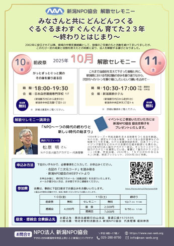 新潟NPO協会は、2002年の設立以来、県域の中間支援組織として23年間にわたり、